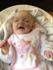 About 2 weeks later jess was allowed to come, I was happy and excited but at the same time I was terrified, in those 2 weeks we learned that jess has 2 holes in the heart ( her ASD will be operated on this year ) dysplastic kidneys, cysts on both kidneys and in her brain, all of which are monitored regular, because of jess’s heart condition she got tired out easily while drinking bottles so her feeding tube stayed in and is still in to this day, she takes around 30/40ml orally and 30/40ml gravity feed every 3 hours on a good day she can drink full 80ml bottles but this is rare.