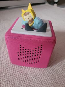 Grace is able to play the Tonie box herself and I make stories up about my house and garden and dog. I also did a Christmas Tonie. The surprise for me is how the other kids love Tonie too and so I customise stories for them as well.